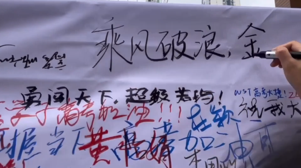 5月24日,长沙市麓山滨江实验学校的高一、高二年级1000名学子齐唱《我相信》,为即将迈入高考考场的高三学长加油鼓劲。