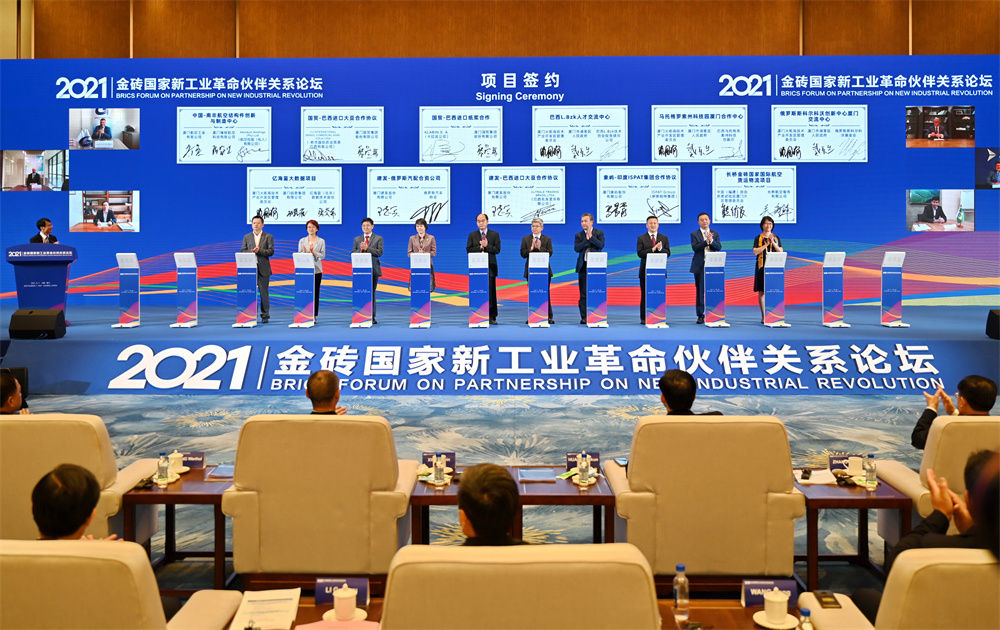 2021年9月7日,金砖国家新工业革命伙伴关系创新基地在厦门举行签约仪式。新华社记者林善传摄