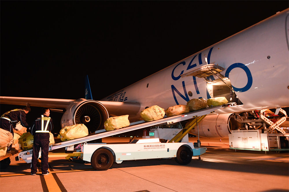 2019年10月30日凌晨,浙江杭州飞往俄罗斯首都莫斯科的首条直达电商货运航线“菜鸟号”从萧山国际机场首航。新华社记者黄宗治摄