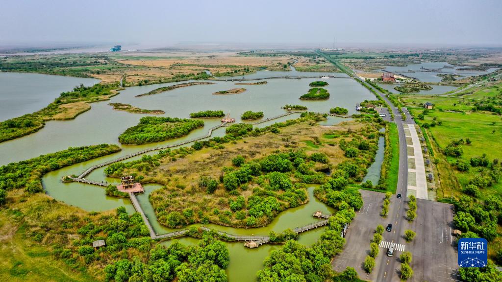 这是2021年5月13日拍摄的山东黄河三角洲国家级自然保护区景色(无人机照片)。新华社记者郭绪雷摄