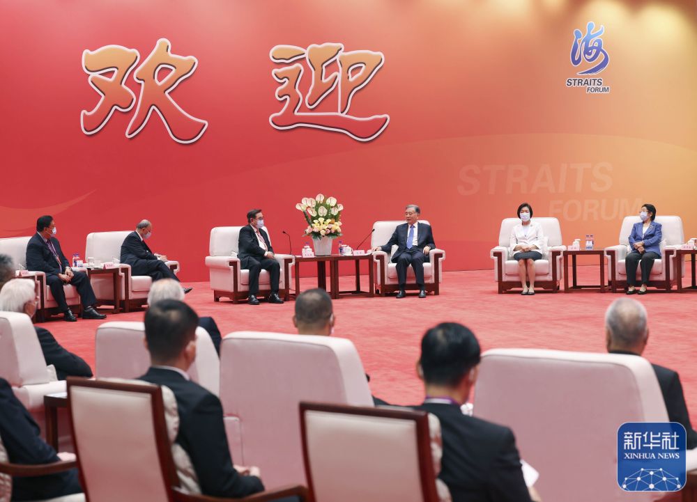 7月13日,中共中央政治局常委、全国政协主席汪洋在厦门出席第十四届海峡论坛大会并致辞。这是论坛开幕前,汪洋会见参加论坛的台湾嘉宾代表。新华社记者刘卫兵摄