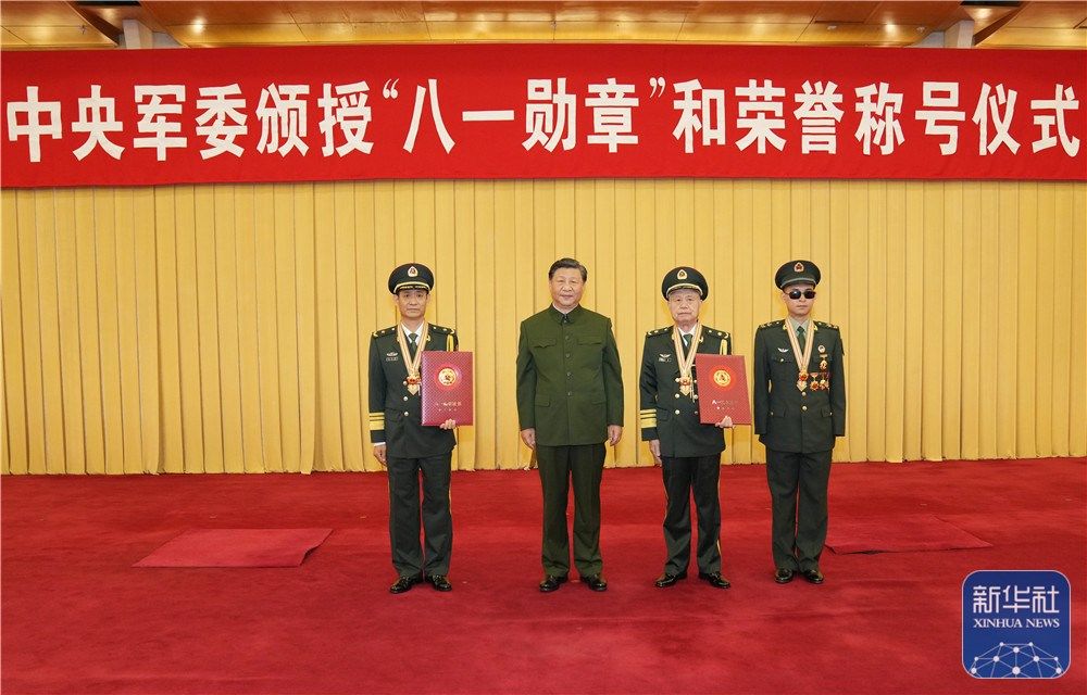 八一大楼仪式现场,部队官兵和文职人员代表整齐列队,气氛庄重热烈。下午4时,18名持枪礼兵正步入场、伫立两侧,颁授仪式开始,全场高唱国歌。中共中央政治局委员、中央军委副主席许其亮宣读习近平签署的中央军委授予“八一勋章”和荣誉称号的命令,中共中央政治局委员、中央军委副主席张又侠主持仪式。