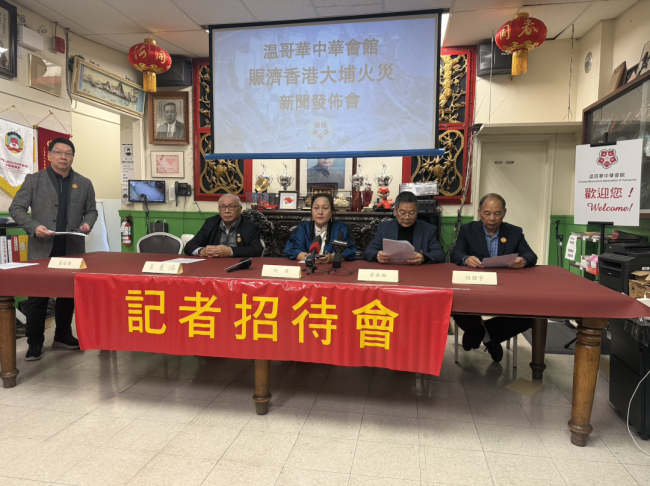 温哥华中华会馆就香港宏福苑五级火警发起紧急赈灾行动,呼吁侨界踊跃捐款伸出援手