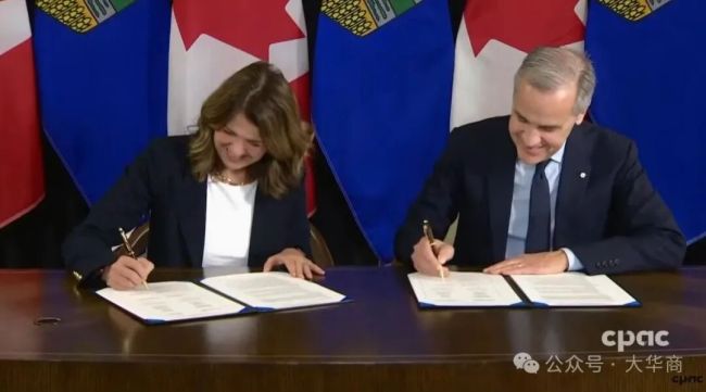 加拿大总理卡尼与阿尔伯塔省省长史密斯签署了一项重大的能源合作协议,明确了在联邦《重大项目法》框架下,若要批准一条通往太平洋的新输油管道,必须满足的减排及其他气候条件。根据这项新的谅解备忘录(MOU),联邦与省级政府承诺采取一系列措施,以加强在重大基础设施项目上的合作、提高能源产量,并提升加拿大的经济可持续性及出口潜力。