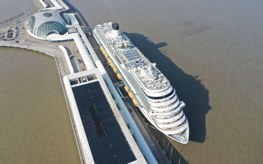 1月1日,“爱达·魔都号”停靠在上海吴淞口国际邮轮港(无人机照片)。