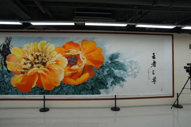 “我将西画的丙烯融入巨幅牡丹创作,既展现其国色天姿、盛世气象,亦是对生命胜景的深情礼赞。我常自比一只小蜜蜂,在文化的芬芳中采撷不止——生命虽微,若能将有限的生命融入无限的文化事业中,便能获得生生不息的力量。正是这份力量,让我始终满怀热情、笔耕不辍。”