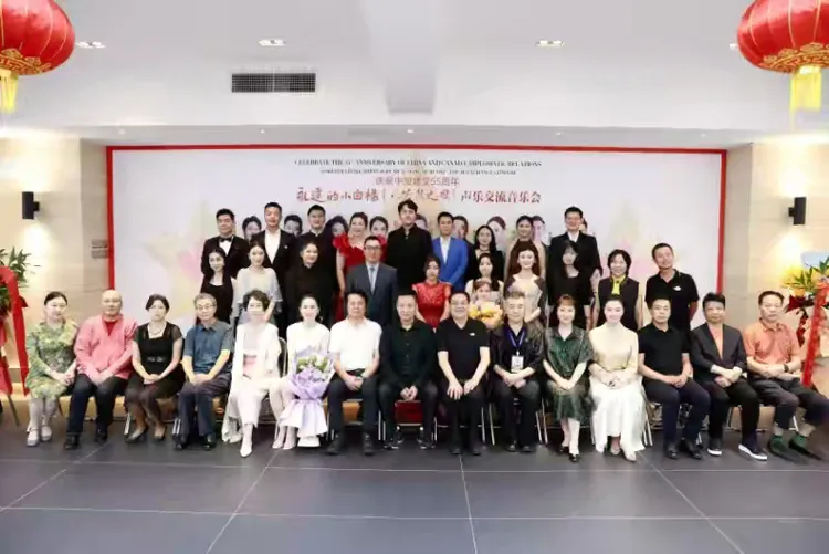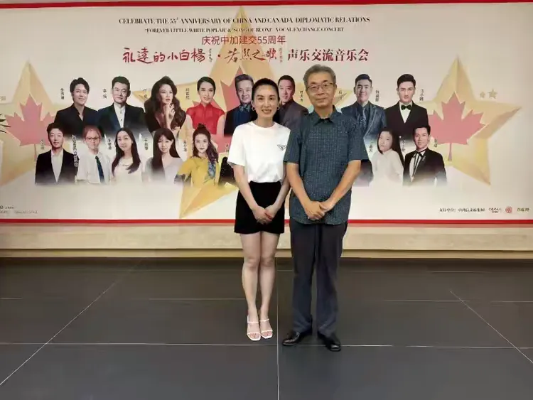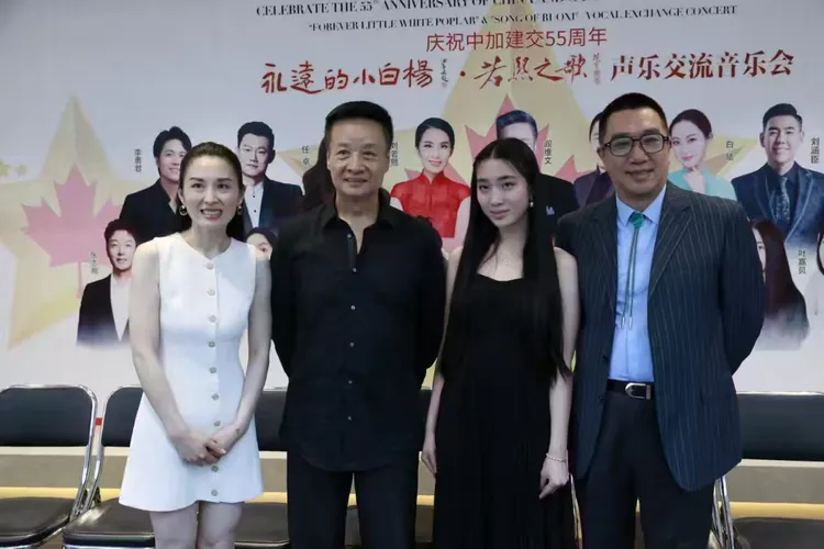 北京时间7月23日下午,“庆祝中加建交55周年・永远的小白杨・若熙之歌・声乐交流音乐会”在司麦澳(北京)文化艺术有限公司艺术空间举行。阎维文民族声乐大师班的优秀学员与加拿大学生通过歌声搭建起中加文化交流的艺术纽带,传递出文化交融的无限魅力。本场音乐会由中鸿信文旅集团和司麦澳(北京)文化艺术有限公司共同主办。加中文化传播协会执行会长兼秘书长叶洪涛担任主持,中国音乐学院声乐歌剧系艺术指导任卓、白皓负责钢琴伴奏。