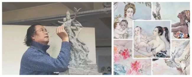 薛林兴被誉为“东方美神”,他融合中西艺术精髓,开创“新仕女画派”,将东方神韵与古希腊人体美、古印度性感美结合,代表作《贵妃醉酒》《洛神》《飞天》《山鬼》《子夜》《七彩天音》媲美西方大师安格尔的《大宫女》《瓦平松的浴女》。
